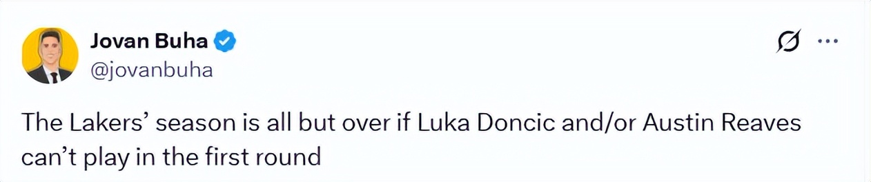 Lakers reporter Buha expressed on social media,if Doncic and/or Reaves cannot play in the first round, the Lakers' season is essentially over earlyWhat are your thoughts? Feel free to leave your comments.