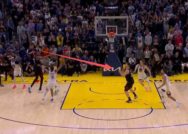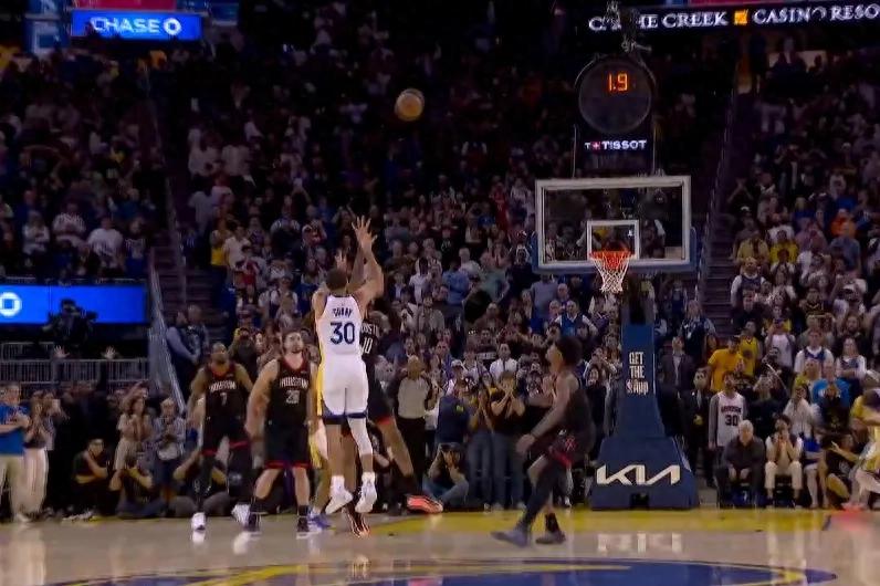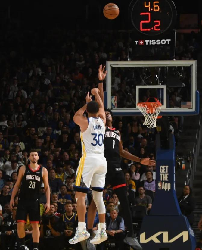 In the final moments of the game, with the Warriors trailing by one point, Curry chose to take control of the ball, dribbling from the backcourt to the frontcourt. Draymond came over to set a screen for him, and the defender switched from Amen to Xiaojia. After a crossover dribble, Curry abruptly stopped and forcefully launched a three-pointer, placing the team's fate on this one shot. Unfortunately, the ball ultimately missed.