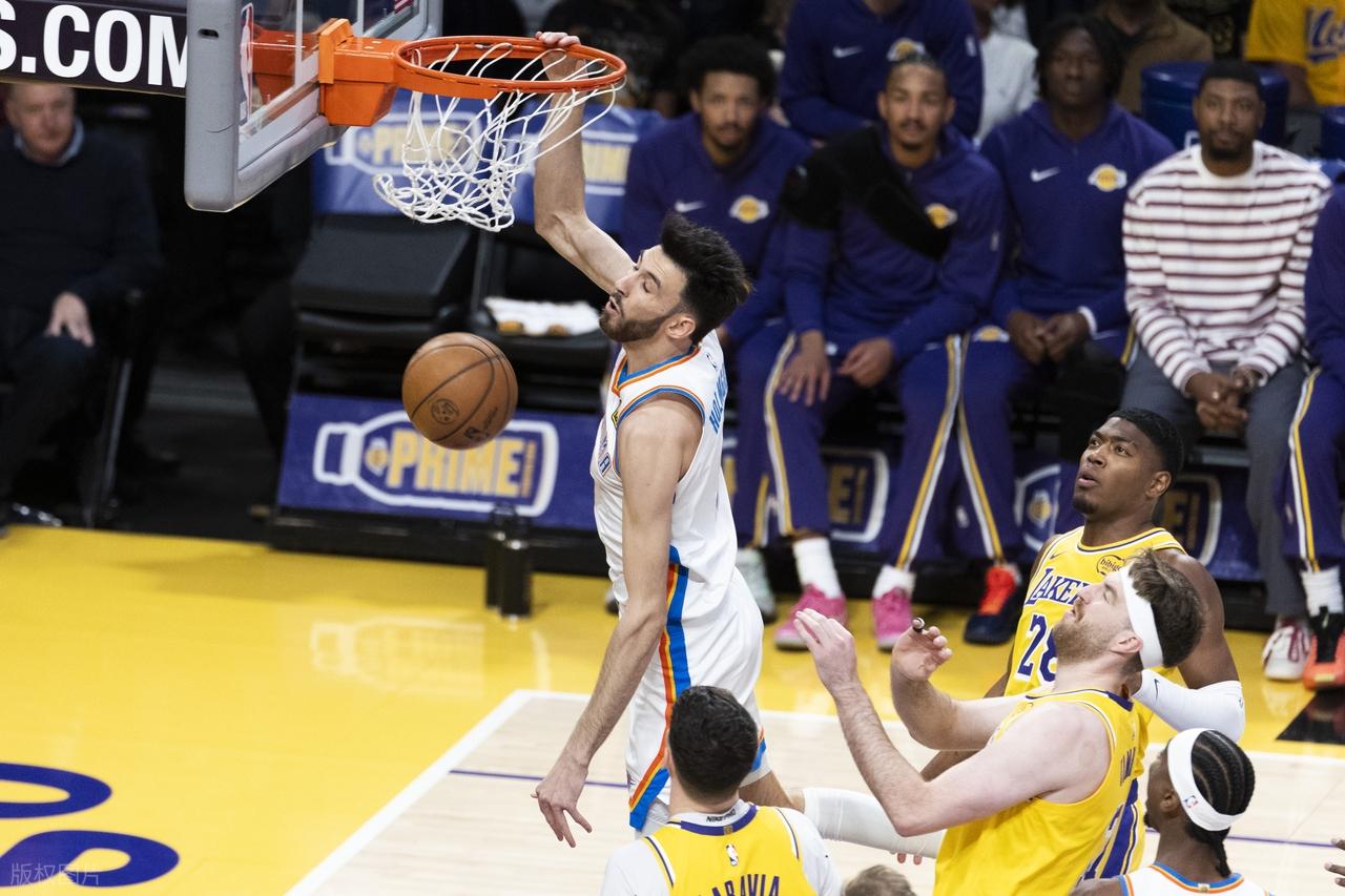 On April 8, Beijing time, in the NBA regular season, the Thunder defeated the Lakers 123-87, achieving a regular season sweep. During the Lakers' regular season sweep by the Thunder, they averaged a net loss of 29 points per game. In this game, Doncic and Reaves were absent due to injuries, James was out for injury management, and Alexander scored 25 points.