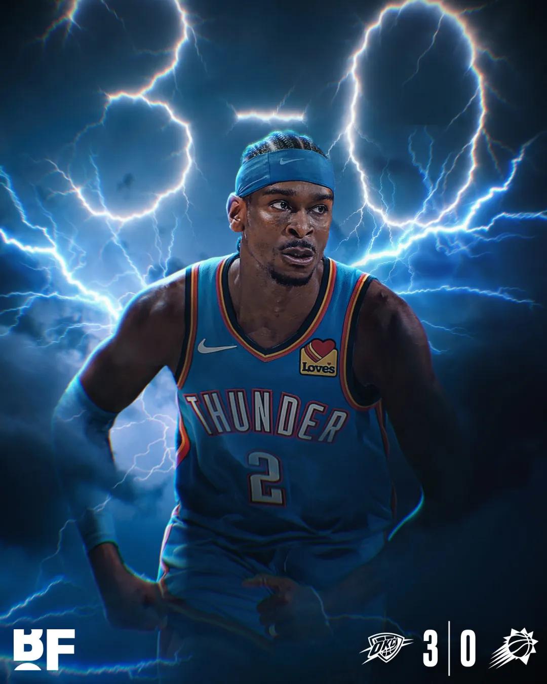 G3激戰,亞歷山大投籃18次命中15次,以約83%的高命中率狂轟42分、4籃板、8助攻,帶領雷霆客場121-109擊敗太陽,目前系列賽以3-0大幅領先並取得賽點。