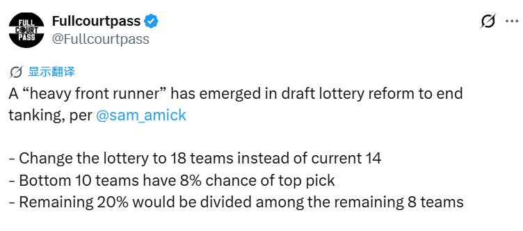 本季擺爛亂象嚴重損害聯盟形象,針對遏止刻意擺爛的三套改革方案中,第一號方案已成為絕對主流備選。