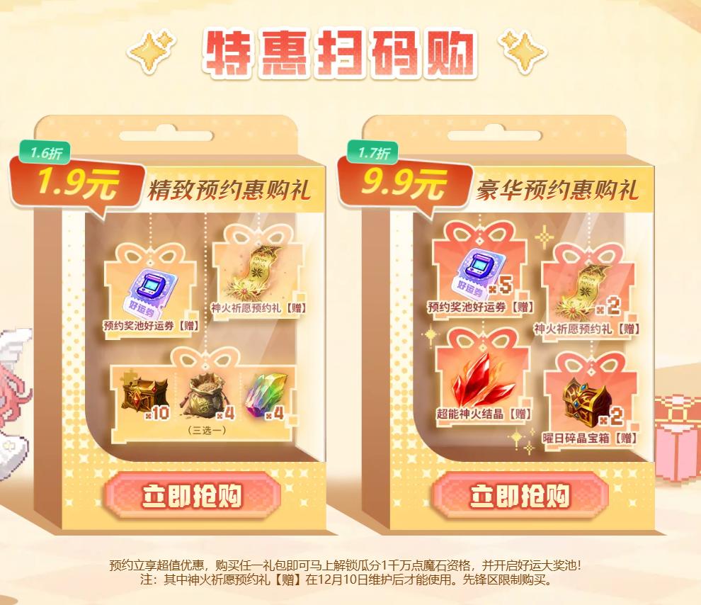 此外,若角色神火評分達到24萬或購買了預約禮包,每滿20人還能獲得「預約瓜分魔石券」(可用於瓜分一千萬點魔石),評分越高券數越多,最高可翻三倍!但請注意,務必於12月10日更新後一週內上線,否則瓜分券將失效。