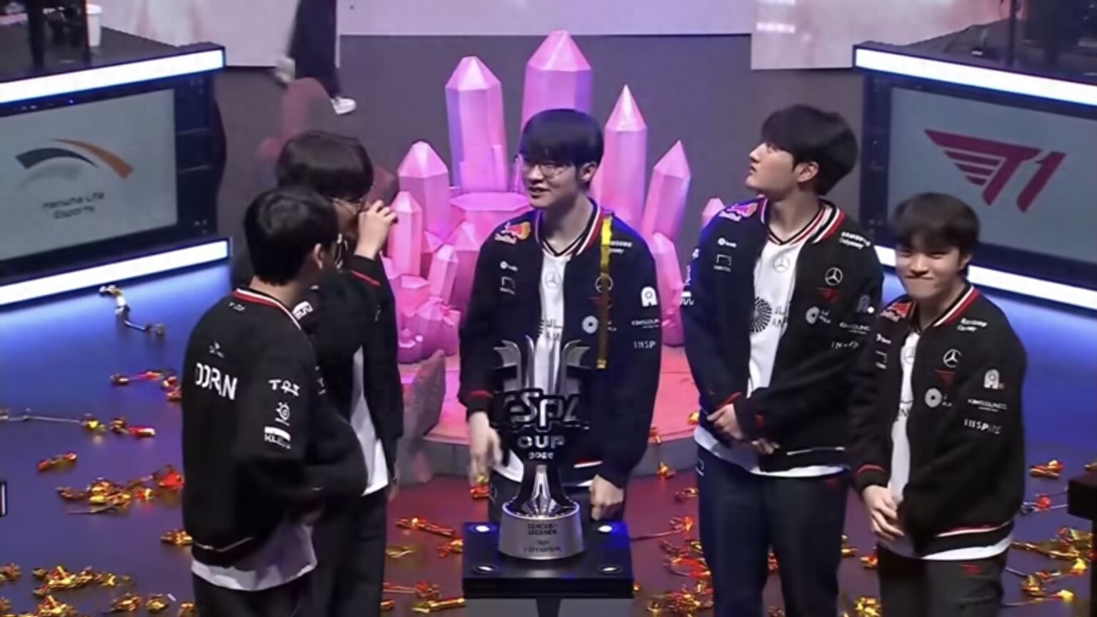 LCK賽區KesPa杯冠軍終於誕生,T1在決賽對陣HLE,以3:2擊敗對手,成功捧起隊史首座K杯獎盃。這場BO5賽事跌宕起伏,T1前兩局皆為紅色方,輕鬆取得賽點,當大家以為會3:0結束時,T1開始上演戲碼,連續送出兩分,將比賽拖入決勝局。