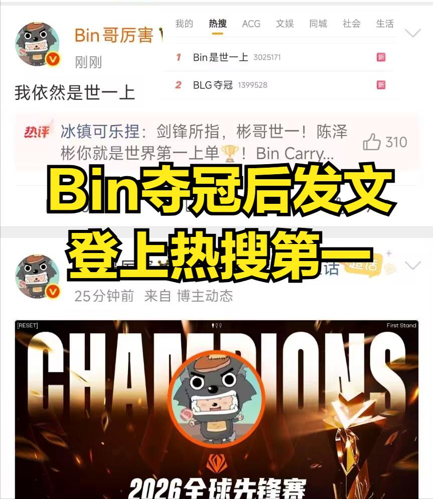 Upon Bin receiving FMVP, LPL's official blog promptly posted acclaiming Bin as the "world's best top laner," and Bin himself stated on social media that "he remains the world's best top laner," which instantly topped forum trending lists. Countless LPL fans flooded Bin's comments celebrating, with many believing that if Riot doesn't deliberately target BLG, BLG truly has potential this year to achieve the "Golden Road," given Bin's exceptional lane prowess—no top laner can outmatch him in lane or team fights.