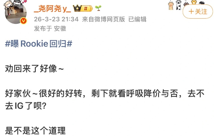 Regarding other players, insiders爆料 that Rookie also initially didn't plan to play the second stage. Some even revealed that IG approached Doinb to play for热度, but Doinb refused. Later, IG began strengthening: Meiko returned to the赛场, Jwei left, the bot lane引入Jiaqi, and the top lane pursued Breathe.