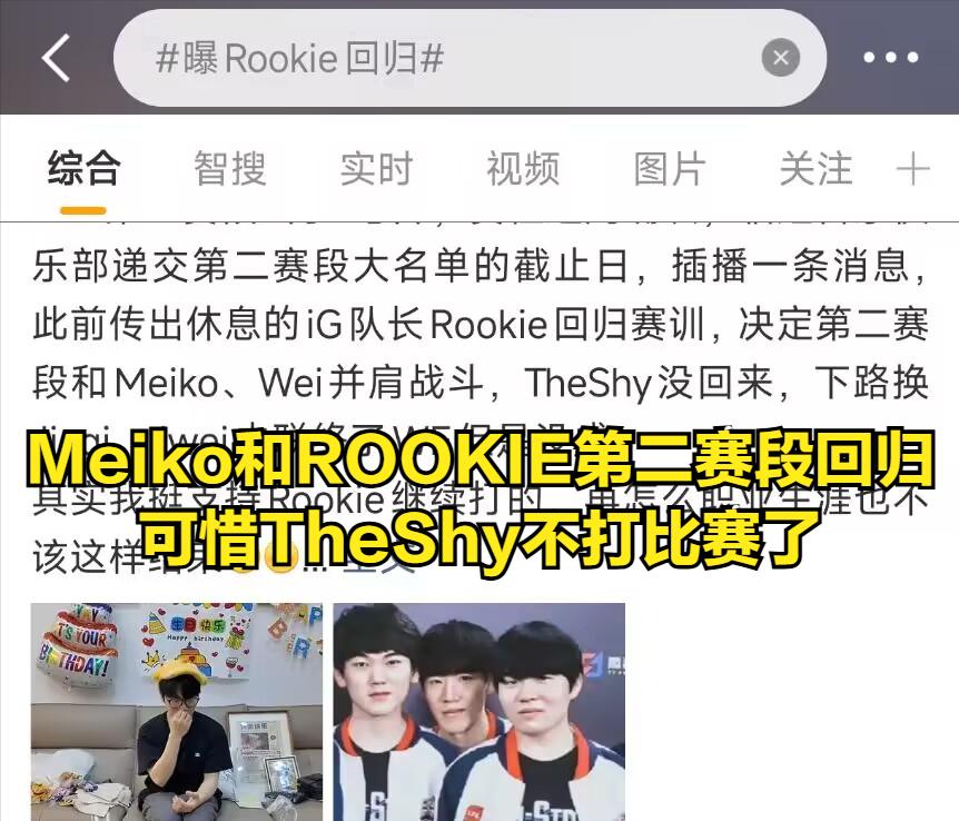 As more external information emerged, IG insiders finally couldn't hold back and revealed details. An IG super topic moderator disclosed that ROOKIE recently arrived at the IG base and participated in IG's training matches. After this news broke, many IG fans felt relieved, since ROOKIE is currently IG's only star player. Without ROOKIE, IG's new season would likely be doomed. Besides ROOKIE returning to IG, support Meiko is also rumored to be rejoining IG for the new season, meaning IG will have two world champion players.