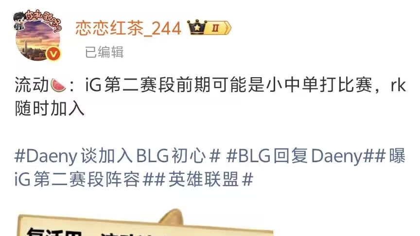 Leak blogger Hongcha revealed: In the early part of IG's second stage, the young mid laner Renard might start, with Rookie as a substitute ready to play anytime. Since he's already back, what's the point of not playing? Is Rookie worried about being criticized by fans? Or is he still enjoying the honeymoon phase with his new girlfriend? However, Renard hasn't played a single match since the Demacia Cup; he really needs a chance.