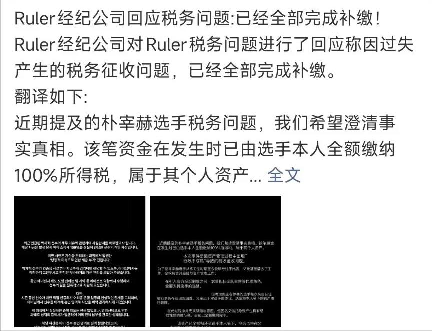 According to Korean online reports, Ruler's penalty from the tax office was entirely due to his own "scheming." Ruler hired his father as his personal agent and transferred his assets and substantial stock holdings to his father's name to avoid paying taxes. Based on the court's judgment documents, the tax office concluded that Ruler's father did not perform any duties expected of an agent; all assets and stocks under Ruler's name were actually used by Ruler himself, making his father merely a facade.