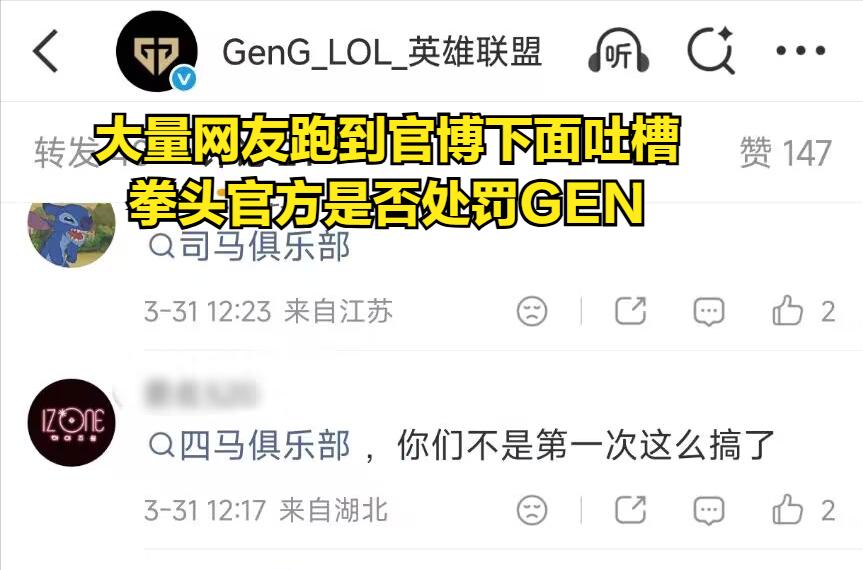 From inappropriate remarks by a player in their "Overwatch" division, to previous commercial copy referring to Taiwan as an "overseas country," to this meticulously designed yet flawed live Q&A segment, GEN's management and operational staff truly repeatedly test the limits of LPL viewers. Following GEN's live stream "explosion," many LPL viewers went to GEN's official blog to criticize, and even numerous LPL viewers protested at Riot's official blog, hoping the LOL authorities would penalize GEN, preferably by banning them.