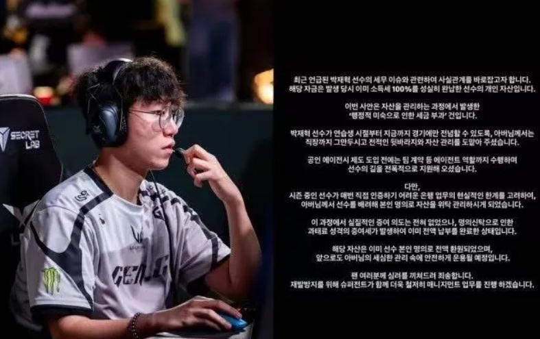 First is the matter concerning Ruler. Recently, Ruler was exposed on Korean websites for tax evasion, which reportedly started in 2018. The specifics involve Ruler fabricating labor costs, listing his father as an agent, paying high agent fees, and reducing comprehensive income tax payments. Due to lack of contracts and actual work records, this was deemed违规.