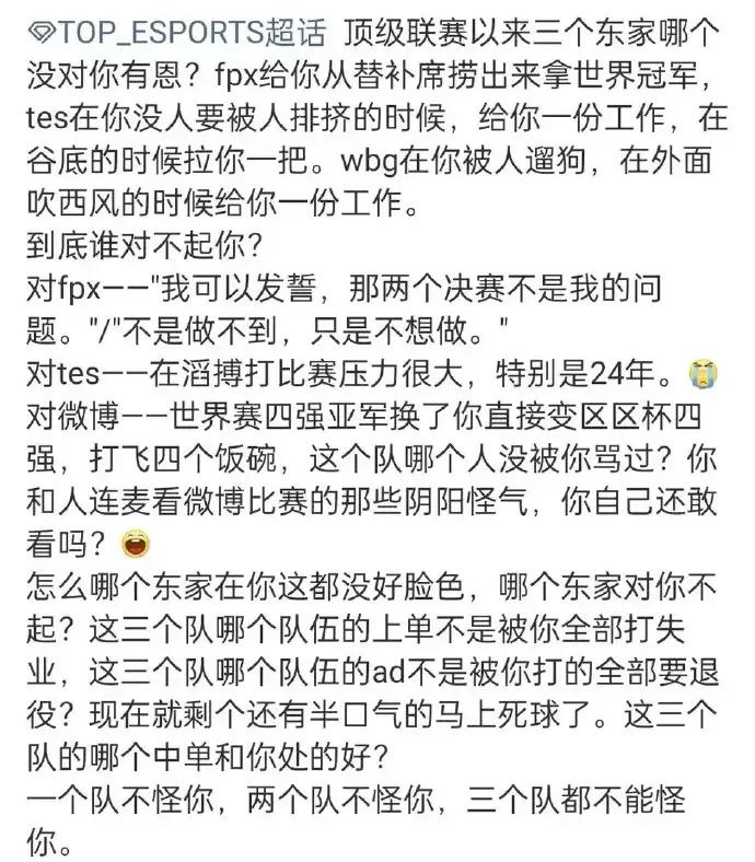 Without such detailed fan statistics on Tian's top lane partners, this reality would be hard to grasp. After years in professional play, no top laner has collaborated with him for over a year. FPX's team culture back then was heavily sarcastic and teasing; constant mockery among teammates could be quite taxing. Not every relationship was harmonious; with success, the teasing was lighthearted, but losses likely triggered full-blown conflicts.