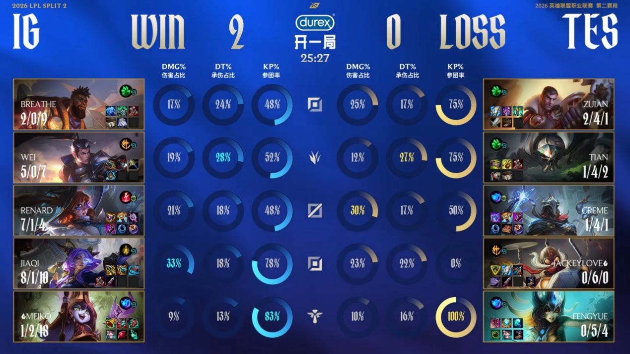The second phase of LPL kicked off tonight with an opening match showdown. The first game was packed with highlights, featuring TES versus IG. Both teams have many veteran players returning, and their strengths appear quite comparable.