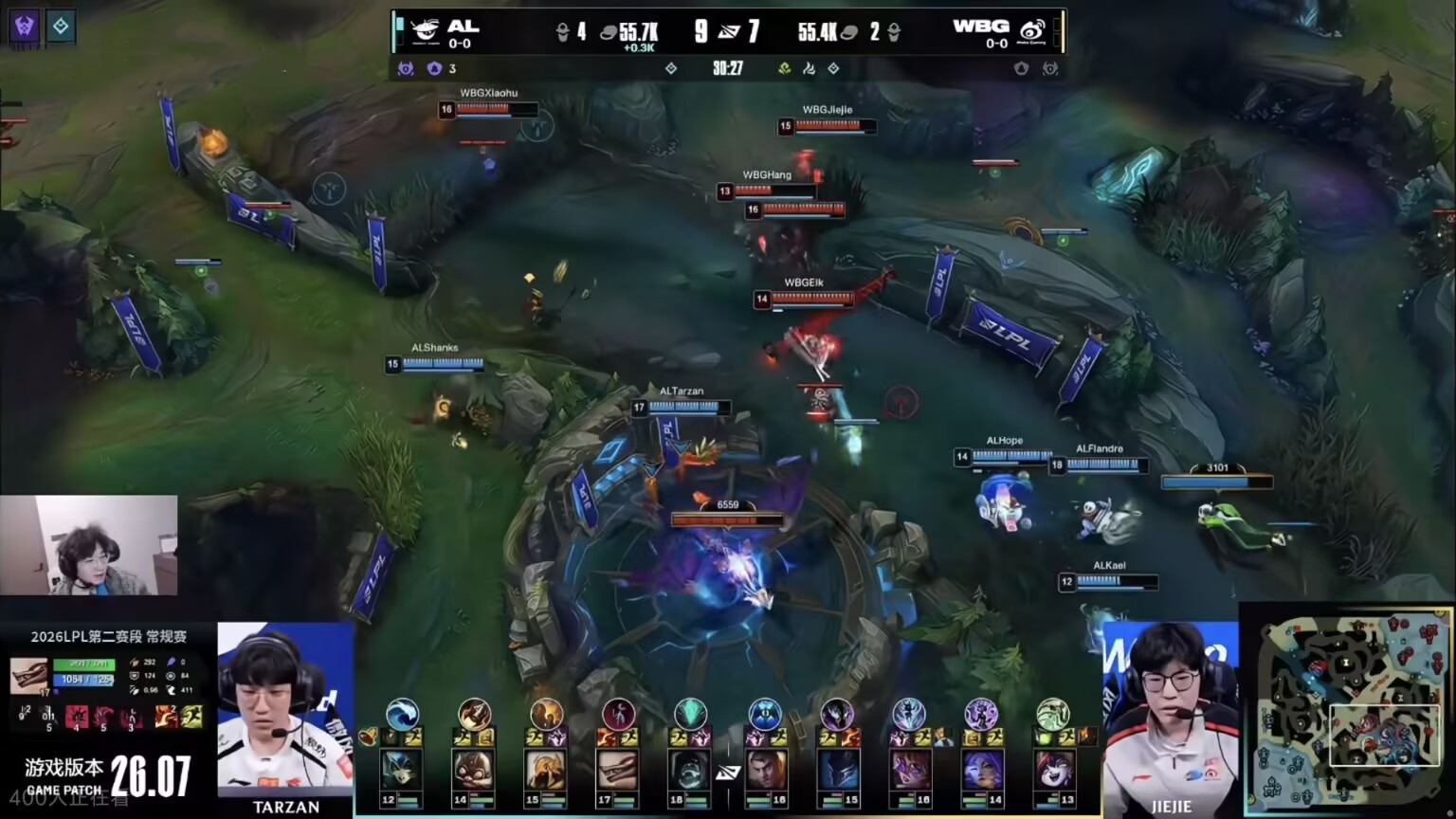 Another match was WBG versus AL. After changing their support, it was expected that WBG's strength would improve, but it turned out to be the same old story. Hang's performance was indeed a bit better than Erha's, but the trio of top, mid, and jungle were each worse than the last. Xiaohu just arrived in spring, seemingly still not out of hibernation, playing so poorly it's stomach-churning, having a negative impact in both games. Jiejie was either farming jungle or wandering around with no rhythm at all.