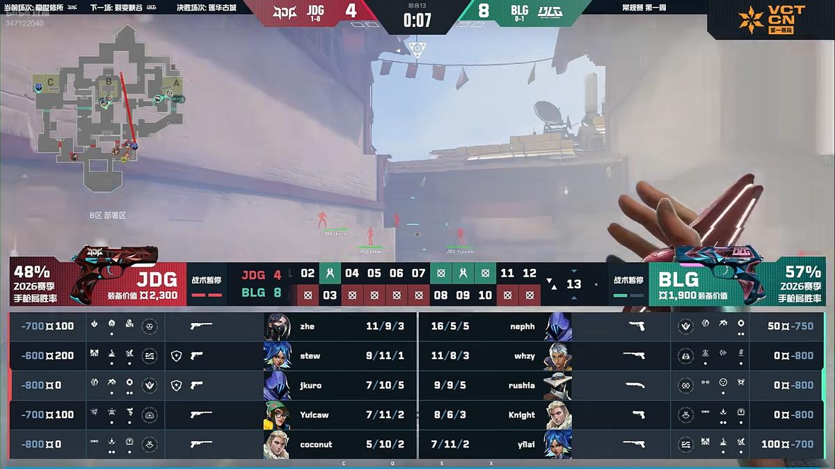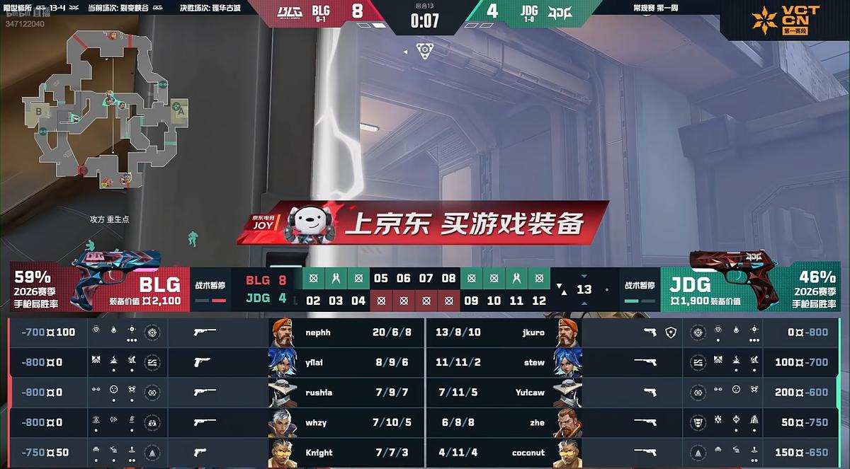 During the 2026 VCT CN Stage 1 regular season, BLG wins against JDG with a 2-0 score.