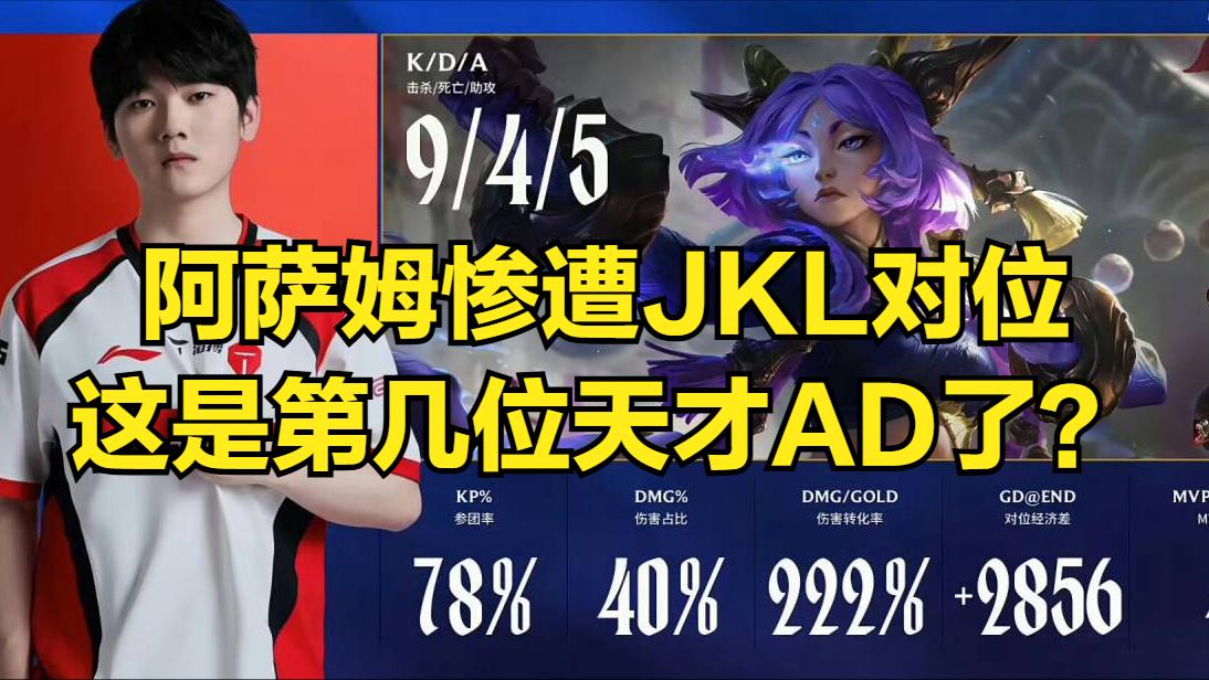 第一局阿薩姆優勢玩盧錫安,各種貼臉接TES上單狼母和輔助薩勒芬妮控制。阿薩姆第二局比賽,使用雙人組飛機加娜美被JKL雲阿娜和露露線殺。而觀眾們最關注的阿薩姆的團戰操作和輸出能力更是被JKL對位碾壓。不少觀眾在看見阿薩姆被JKL全方面壓制後,也是紛紛感嘆JKL狀態保持得太好了,從S8開始算到如今已經快打了8年職業,每個賽季都有「新的天才AD」出現來跟JKL比較,這麼多年下去JKL依然是LPL一線AD。