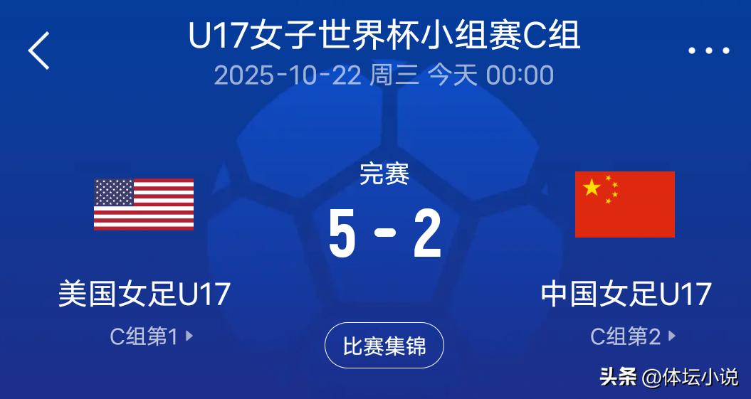 美國女足對陣中國女足。兩隊在小組賽首輪均以大勝且零封對手晉級,第二輪迎來榜首之爭。從整體實力來看,美國女足人才濟濟,且是奪冠熱門,實力明顯強於中國女足,因此本場比賽對中國隊而言,少輸即是贏,能逼平對手就算勝利。可惜理想與現實差距甚大。中國女足竟與美國展開對攻,但在身體對抗和速度上都不及對方。雖然開局率先發難,閃擊破門先拔頭籌,但美國隊不慌不忙,有條不紊地打出高效進攻,對中國女足展開圍攻,輕鬆突破中場防線,上演連進5球的攻勢高潮,直接以5比1大幅領先。最後時刻中國女足攻入一記世界波,但無濟於事,最終以2比5慘敗給美國女足,吞下首敗排名跌至第二!