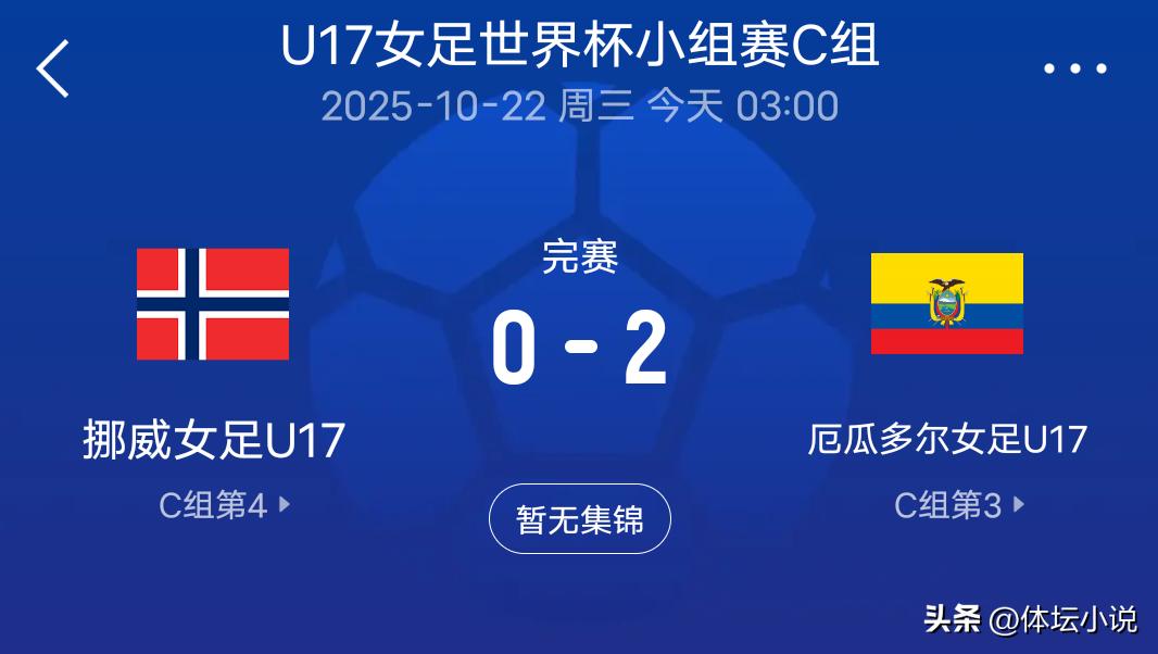 北京時間10月22日,U17女子足球世界盃小組賽熱烈進行中,在剛結束的兩場較量裡,美國女足以5比2大勝中國女足,歐洲勁旅挪威則0比2敗給厄瓜多爾,最新積分榜隨之更新,美國兩連勝高居榜首並提前一輪晉級16強,中國女足遭遇首敗位列第二,厄瓜多爾拿下首勝排名第三,挪威連吞兩敗面臨出局危機!