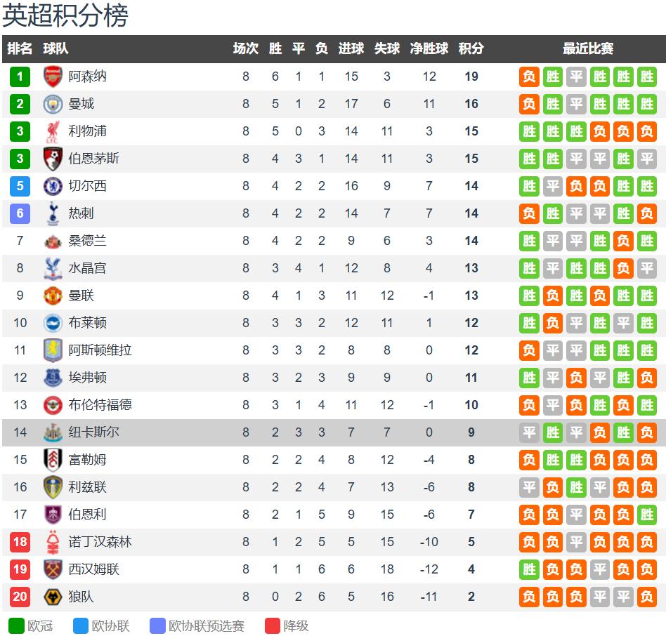 經過多年英超高收入和強大購買力的累積,現在頂級聯賽毫無懸念地屬於英超。歐冠小組賽第三輪首日,英超三支球隊(阿森納、曼城、紐卡素)均以至少兩球優勢獲勝,且全部成功零封對手。