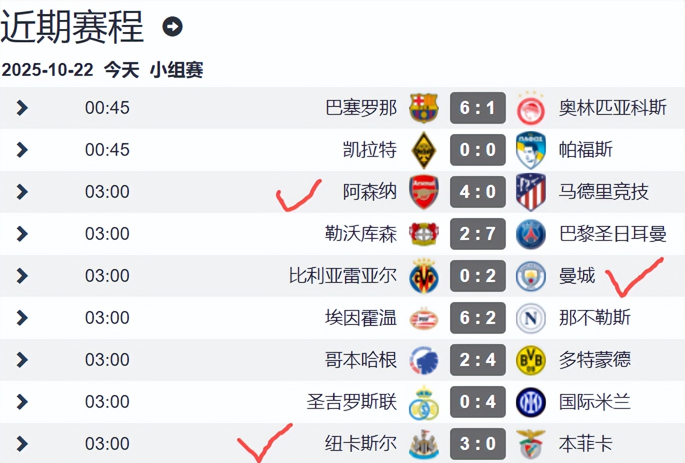 英超排名前兩位的阿森納與曼城在歐冠皆為奪冠熱門,擁有最強陣容,贏球並零封對手已成常態。而英超中下游第14名的紐卡素面對穆里尼奧執教的葡超豪門本菲卡,也以壓倒性優勢3球取勝。阿森納、曼城與紐卡素合力讓馬競、黃潛、本菲卡三隊均未取得進球,這正是英超強大戰力的體現,長期高節奏比賽和激烈對抗鍛煉出的成果。