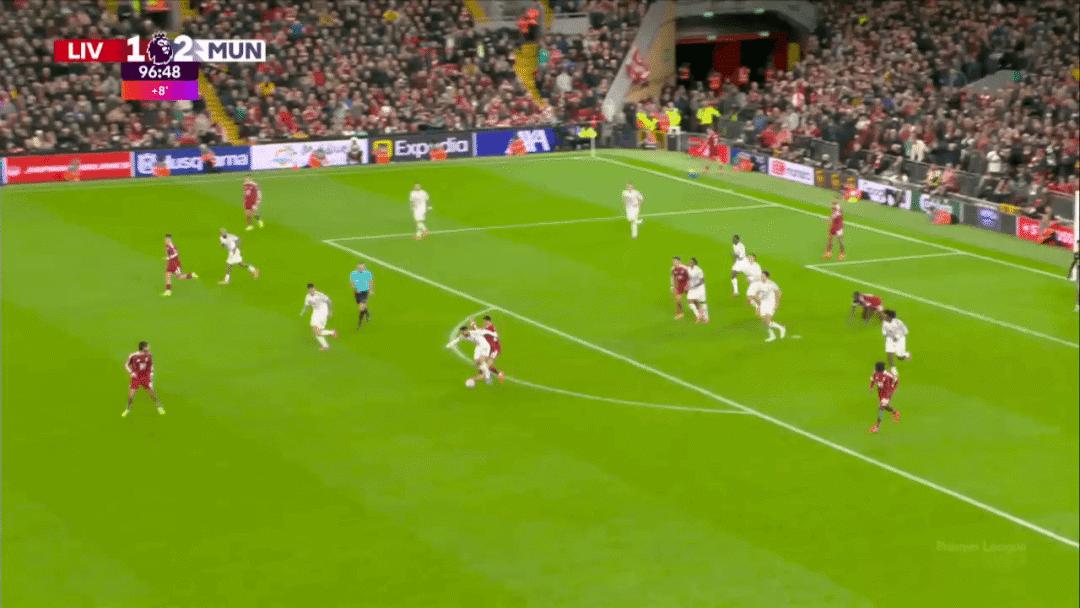 這一戰術調整效果顯著,庫尼亞經常大範圍回撤,協助布魯諾·費爾南德斯和卡塞米羅掌控中場,並迫使利物浦防守球員離開原位,從而幫助姆貝莫在邊路尋找空間。