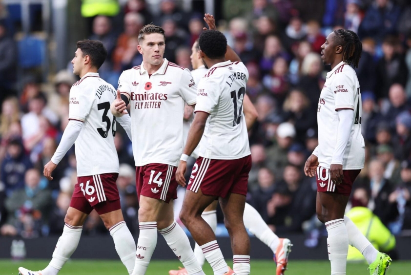 在伯恩利的Turf Moor球場上, 阿森納持續展現壓倒性的表現 連續七場比賽保持全勝且零失球,兩位射手維克多·喬克雷斯與德克蘭·賴斯的進球使兵工廠在10場比賽後累積25分,暫時領先曼城9分、利物浦10分,且對手尚未出賽。