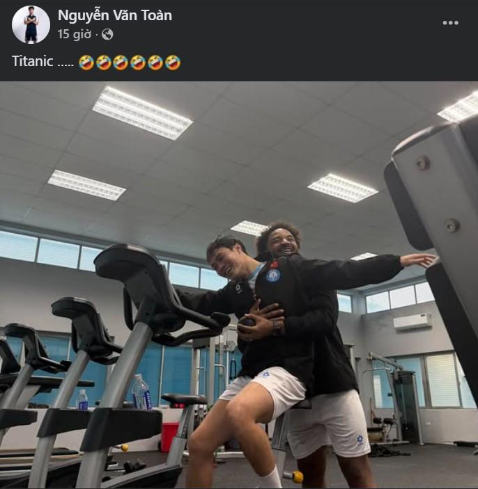 近日,在自己的粉絲專頁上,前鋒阮文全展現了一個既溫馨又幽默的舉動,與隊友阮春山互動。