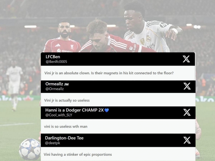 賽後,社交媒體X(原Twitter)上掀起一波批評熱潮。一名網友寫道: 「維尼修斯正在經歷職業生涯中最糟糕的比賽。」