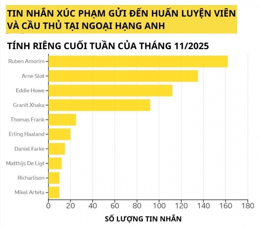 近期一項調查顯示,網路濫用現象在 英超聯賽中已達警戒水平。僅一個週末,就有超過兩千則極端言論,包括侮辱和威脅,針對教練和球員。其中,Ruben Amorim、Arne Slot及Eddie Howe成為主要攻擊目標。