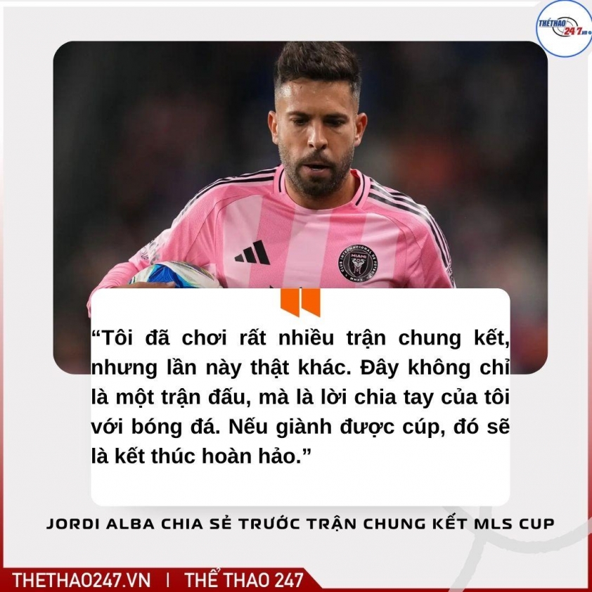 在2025年MLS盃決賽前夕,喬迪·阿爾巴感性表示與溫哥華白帽隊的比賽將是他與邁阿密國際共度輝煌生涯的最後一場出賽。