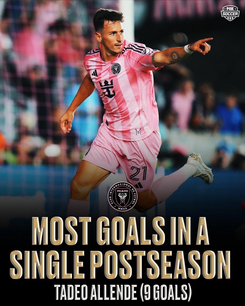 在DRV PNK體育場舉行的決賽成為阿連德的「命運之夜」。他在第90+6分鐘的進球不僅「鎖定」了 邁阿密國際3比1的勝利, 還讓他超越傳奇卡洛斯·魯伊斯,成為MLS季後賽歷史上進球最多的球員。