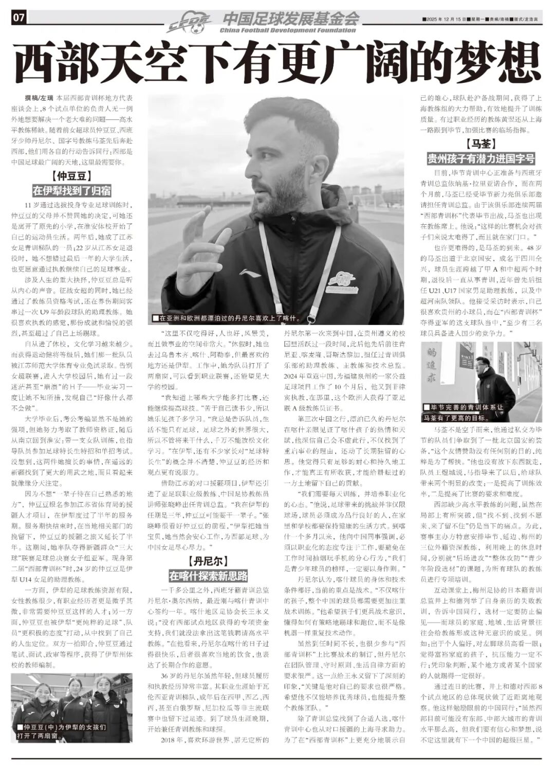 借助江蘇的對口援疆項目,伊犁還引進了亞足聯職業級教練、中國足協教練員講師張曉峰擔任青訓總監。「我在伊犁的任期是三年,仲豆豆可能要在這裡工作一輩子。」張曉峰對仲豆豆的前景非常看好,「伊犁把她當寶貝,她當然會安心工作,為西部足球、為中國女足盡心盡力。」