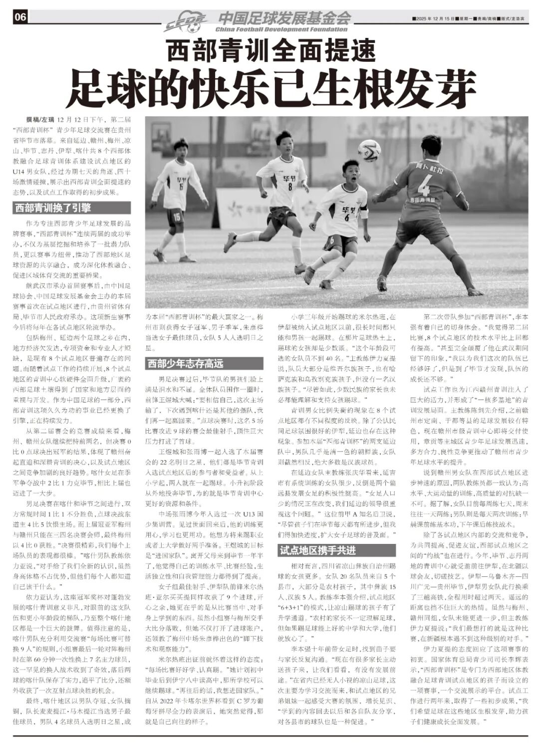 作為專注西部青少年足球發展的品牌賽事,「西部青訓盃」連續兩屆成功舉辦,不僅為基層發掘和培養了一批潛力選手,更以賽事為紐帶,推動了西部地區足球資源的共享與融合,成為深化體教融合、促進區域體育交流的重要橋樑。