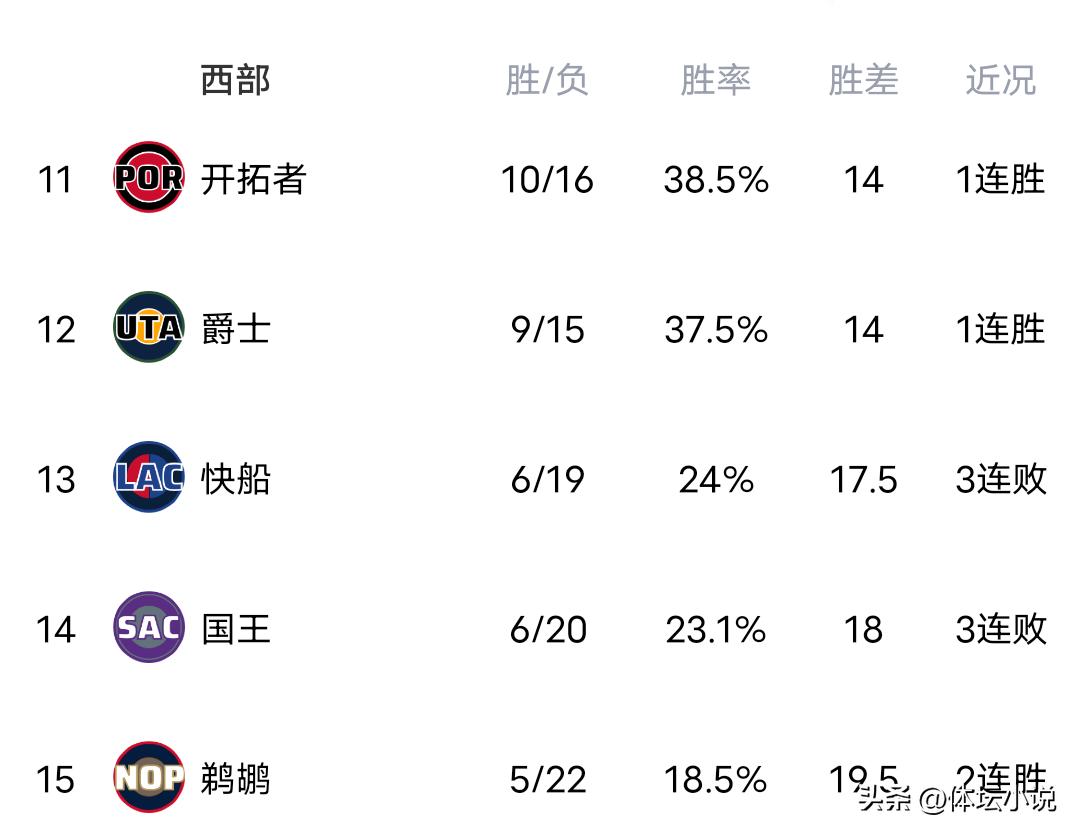 北京時間12月15日,NBA常規賽持續進行,今日又結束了數場對決,其中實力薄弱的國王以103-117慘敗給缺少愛德華茲的森林狼,鵜鶘末節強勢轟炸以114-104擊敗公牛,豪取兩連勝,詹姆斯罰球助力湖人116-114絕殺太陽,焦點戰役勇士以131-136不敵開拓者,西部最新排名更新為:湖人第四,森林狼第六,太陽兩連敗排名第七,開拓者第十一,鵜鶘兩連勝仍居末位!