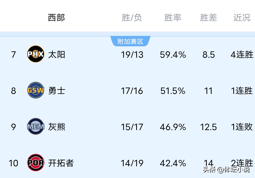 北京時間12月31日,NBA常規賽繼續展開。昨天結束的幾場比賽中,太陽115比101擊敗弱旅奇才,勇士末節發力以120比107擊潰籃網,掘金下半場崩盤爆冷以123比147慘敗熱火,森林狼氣勢如虹以136比101擊潰公牛,步行者119比126不敵火箭,尼克斯130比125險勝弱旅鵜鶘,老鷹129比140不敵衛冕冠軍雷霆,騎士113比101擊敗馬刺,獨行俠122比125惜敗開拓者。如此一來,最新的積分榜已更新,雷霆居首,馬刺兩連敗位居第二,掘金兩連敗第三,火箭三連勝排第四!