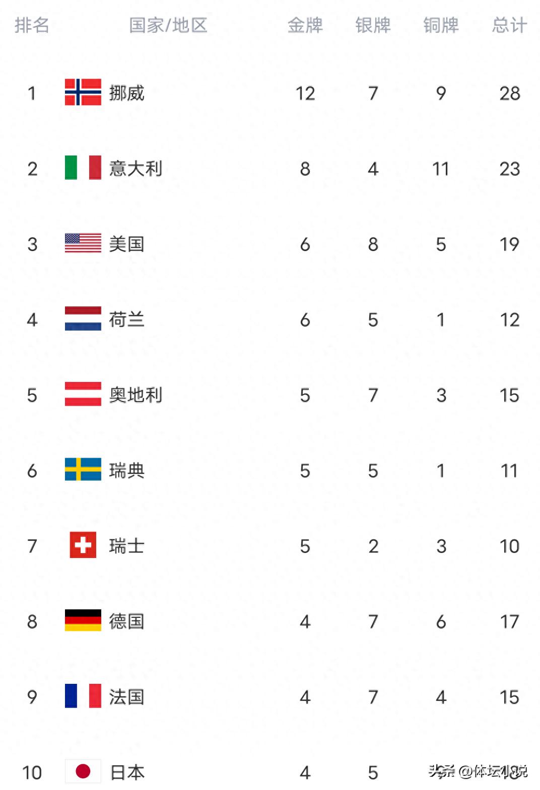 荷蘭在第十個比賽日再添一金,該金牌來自短道速滑女子1000米,這是本屆賽事的第6金。值得注意的是,荷蘭這6金均來自短道速滑與速度滑冰兩個項目,堪稱速滑界的霸主,實力強大得令人驚嘆!