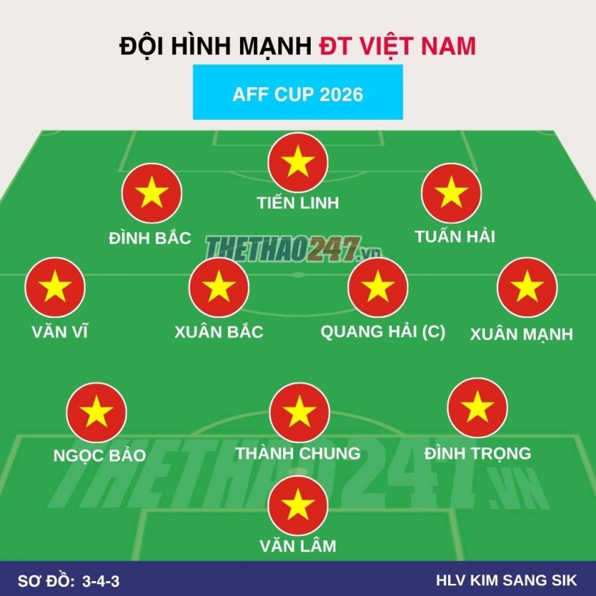 The midfield gathers several alternatives ready to explode if they reach high form in V.League, including Minh Khoa, Van Truong, Duc Chien, along with overseas Vietnamese players like Khoa Ngo, Tran Thanh Trung, and Viktor Le. On the attack, notable backup options consist of Khuat Van Khang, Pham Gia Hung, and Nguyen Tran Viet Cuong.