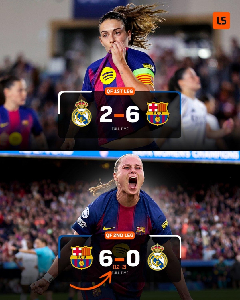 Barcelona crushed their arch-rival Real Madrid with a 6-0 victory early on April 3 (Vietnam time), thereby securing a spot in the Women's Champions League semifinals with an overwhelming aggregate score of 12-2 after two matches.