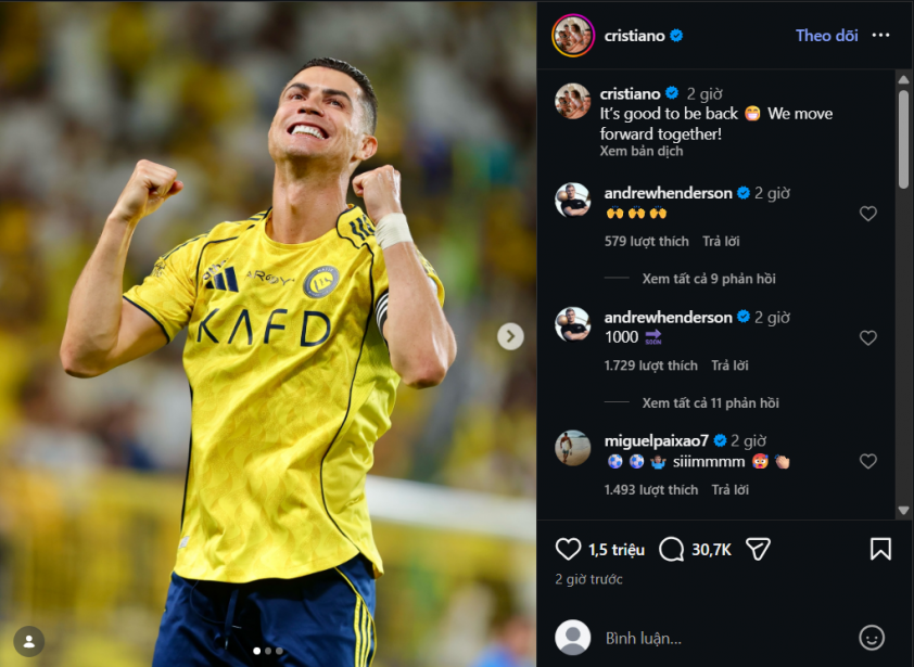 After the match, the legendary forward expressed his joy on Instagram with the message: It's great to be back. Let's keep moving forward!. This message clearly shows the Portuguese superstar's satisfaction after his successful return. The victory at Al-Awwal Park also puts significant pressure on Al Hilal, as this rival is now six points behind ahead of their clash with Al Taawon.