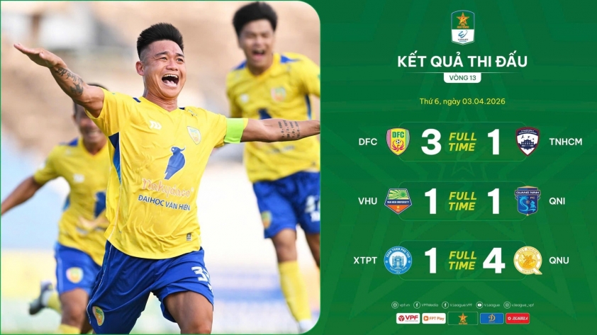 In the other match on April 3rd, Van Hien University drew with Quang Ninh 1-1, thereby missing the chance to break into the top 5.