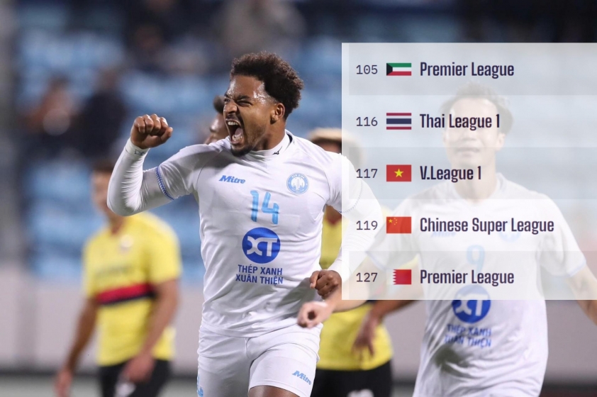 Notably, V.League has now surpassed the Chinese Super League (China) – which stands at 119th globally. Moreover, the gap between V.League and other regional leagues like Indonesia Super League (155th) and Malaysia Super League (173th) is quite significant. This indicates Vietnam football's position is increasingly strengthened in Southeast Asia.