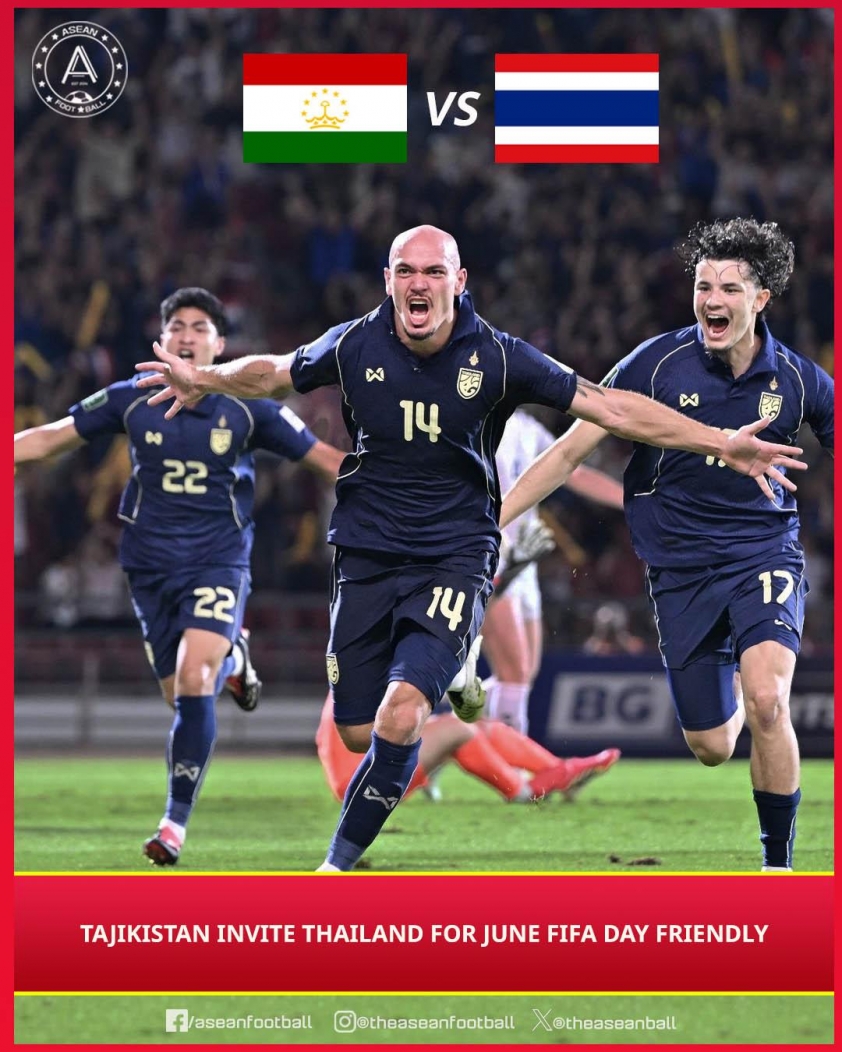 According to information from Asean Football, the Tajikistan Football Federation has sent an official invitation to the Football Association of Thailand (FAT) for the two teams to play a friendly match during the FIFA Days in June. This is considered a notable test for the "War Elephants," especially since Tajikistan is an opponent with a physically strong, fast-paced style of play and is not easily subdued.