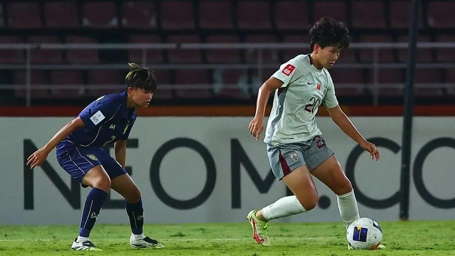 After the match against host Thailand began, China dominated. In the 4th minute, a cross from the Chinese U20 women's team inside the box was blocked by an opponent's arm going out for a corner; the referee did not award a penalty but gave a corner kick. In the 6th minute, Zhou Xinyi's long-range shot caused the goalkeeper to fumble, and Yu Jiaqi's follow-up shot went high. In the 14th minute, Zeng Yujia scored a goal, but it was disallowed for offside. In the 22nd minute, Yu Jiaqi's header was saved out for a corner.