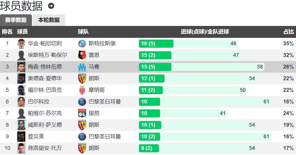Since joining Marseille, Greenwood has contributed to 62 goals (47 goals, 15 assists) in 76 appearances across all competitions. Last season in Ligue 1, he scored 21 goals, tying for first place with top scorer Dembélé (Greenwood, with a higher proportion of penalty goals, narrowly missed the Golden Boot). This season in Ligue 1, he has already scored 15 goals, tying for second place in the league's scoring chart, just one goal behind the leader. Greenwood's goal this season is to win the Ligue 1 Golden Boot.