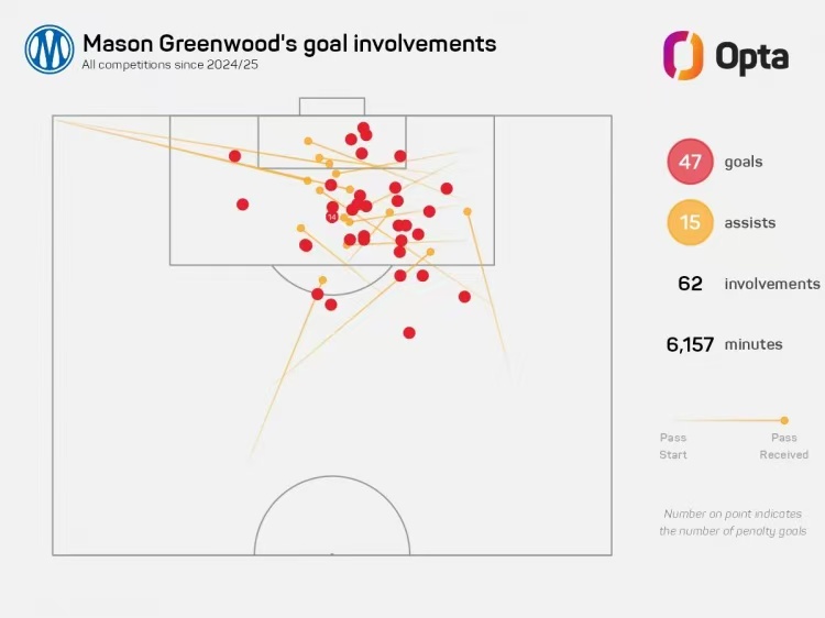 According to statistics, Greenwood's 25 goals and 10 assists across all competitions this season make him the first player in Europe's top five leagues this season to achieve 25+ goals and 10+ assists. He truly excels at both scoring and assisting, capable of shooting and passing with both feet, making him exceptionally sharp.