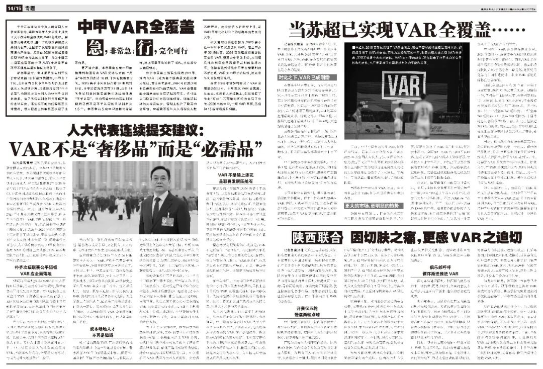 時隔近一年,結合最新行業調研與聯賽實踐,翟志海在2026年的全國兩會上再次提出了類似建議,翟志海表示:伴隨國產技術成熟、成本大幅下降、場地條件全面達標、人才供給穩步充足,中甲聯賽全面啟用VAR的時機已然成熟,2026賽季頻發的爭議判罰更讓這項技術升級成為刻不容緩的底線工程。