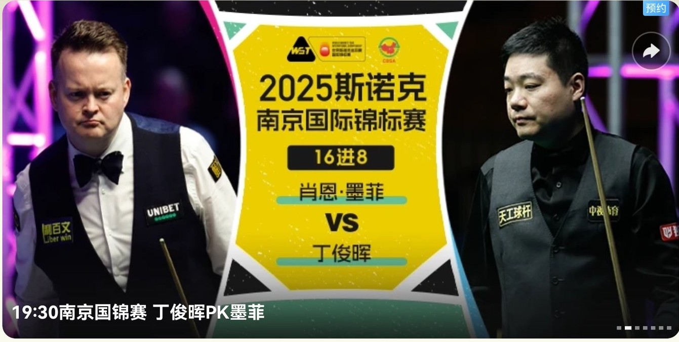 丁俊暉對戰肖恩墨菲,為付費直播。