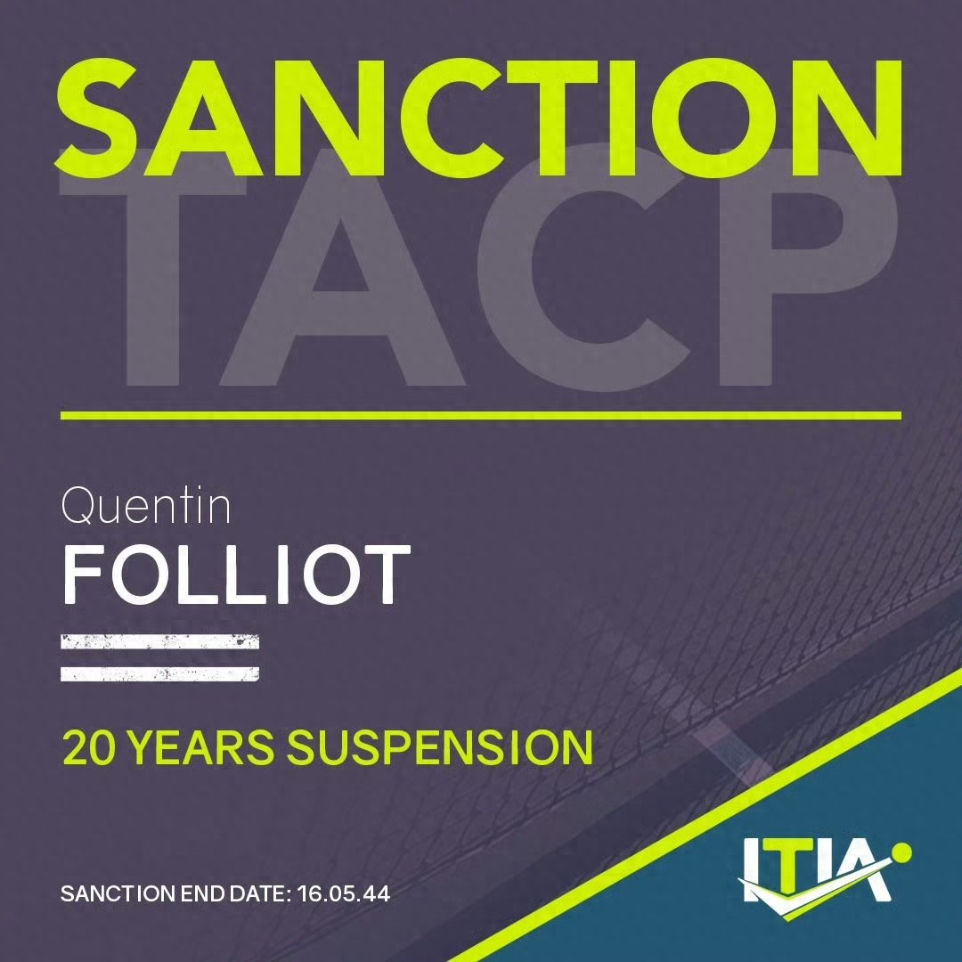 2025年12月11日,國際網球誠信機構(ITIA)正式宣佈對法國網球選手昆汀·福洛特施以20年禁賽及7萬美元罰款,並命令其退還超過4.4萬美元的腐敗款項。