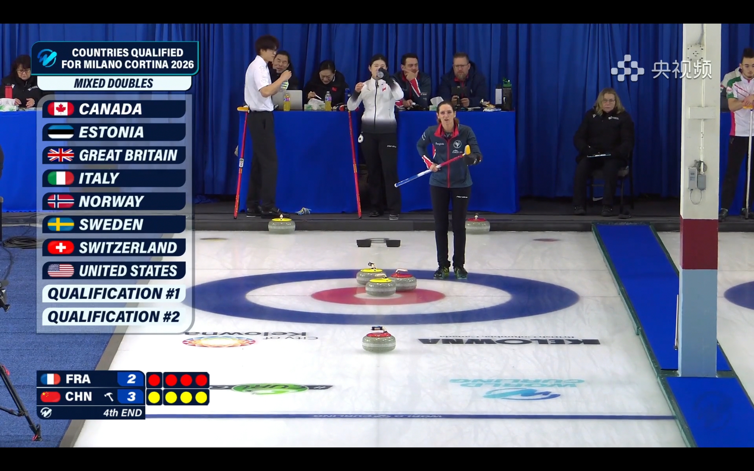 央視頻正在直播冰壺冬奧會資格賽混雙B組循環賽中國對法國的比賽。