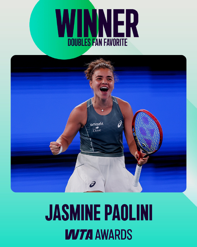 WTA最受球迷喜愛的雙打球員獎由義大利小鋼炮鮑里妮摘得。