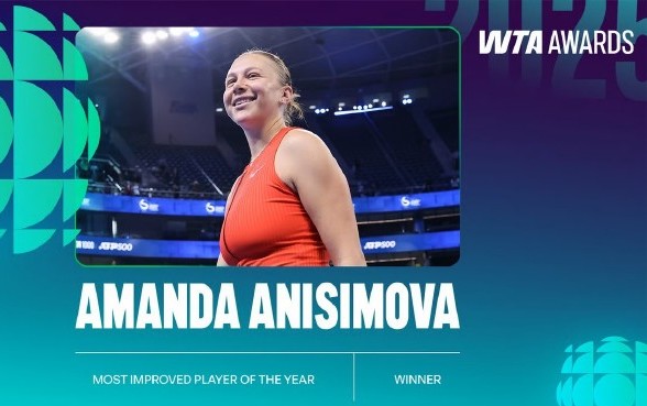 年度進步最快球員大獎頒給美國名將阿尼西莫娃。本賽季,阿尼西莫娃兩度闖入大滿貫決賽,拿下兩個1000賽冠軍,世界排名首次躍入前十,年終排名升至第四,進步速度驚人。
